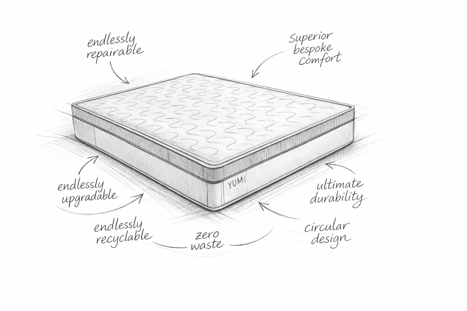 Yumi is designed around the way the body naturally rests, combining clean aesthetics with thoughtful support for everyday sleep.
